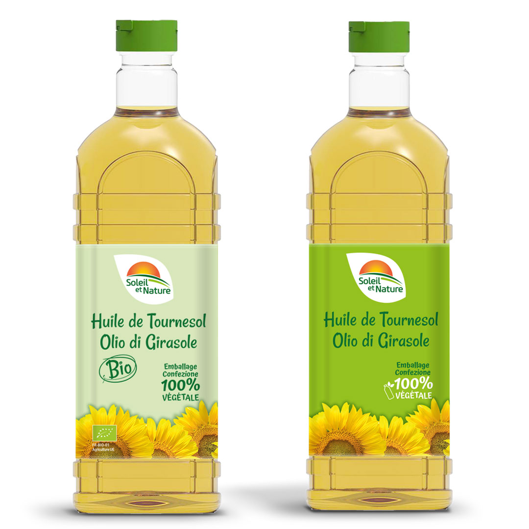 Sviluppo grafico etichette avvolgenti per Olio di Girasole Bio e Tradizionale